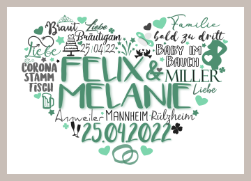 Wäre es nicht wundervoll, wenn die persönlichen Wünsche und Gedanken für das Brautpaar schon das passende Geschenk zur Hochzeit sind? Wenn es eine originelle Art gäbe das Geldgeschenk für den schönsten Tag des Lebens den perfekten Rahmen zu geben? Wünsche dem frischvermählten Paar alles Glück für die Zukunft mit einem hochwertigen, individuellen Poster in einem wunderschönen Design.