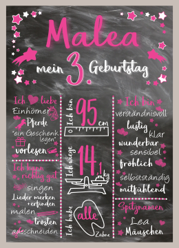 Ob zum 1. Geburtstag, zum 2. oder für den Kinder-Geburtstag – ob zum 30. Geburtstag, 50. Geburtstag oder zum 80. Geburtstag – eine schöne und einfallsreiche Geschenkidee findest du hier für jede und jeden! Unsere hochwertigen Poster mit den persönlichen, individuellen Daten oder Meilensteinen in einem wunderschönen Design kommen immer besonders gut an und sind zudem eine schöne Erinnerung für die Ewigkeit.